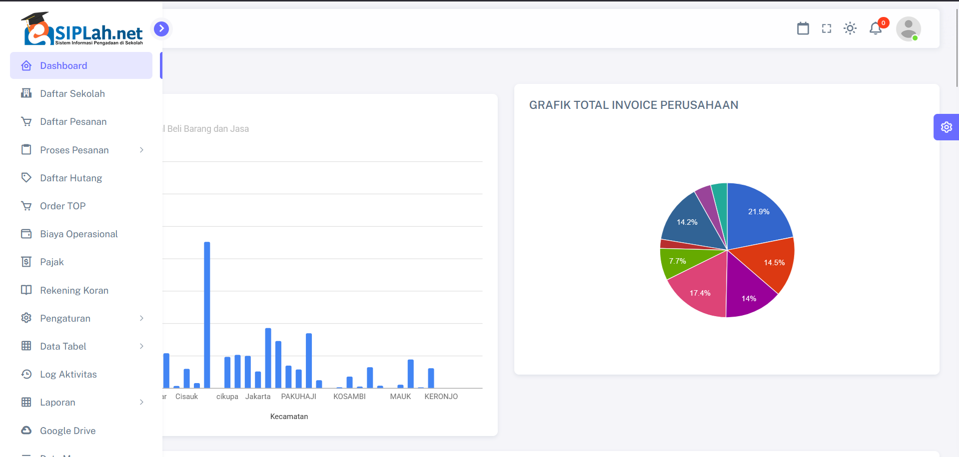 Dashboard admin responsif untuk sistem internal, laporan, dan analitik data.